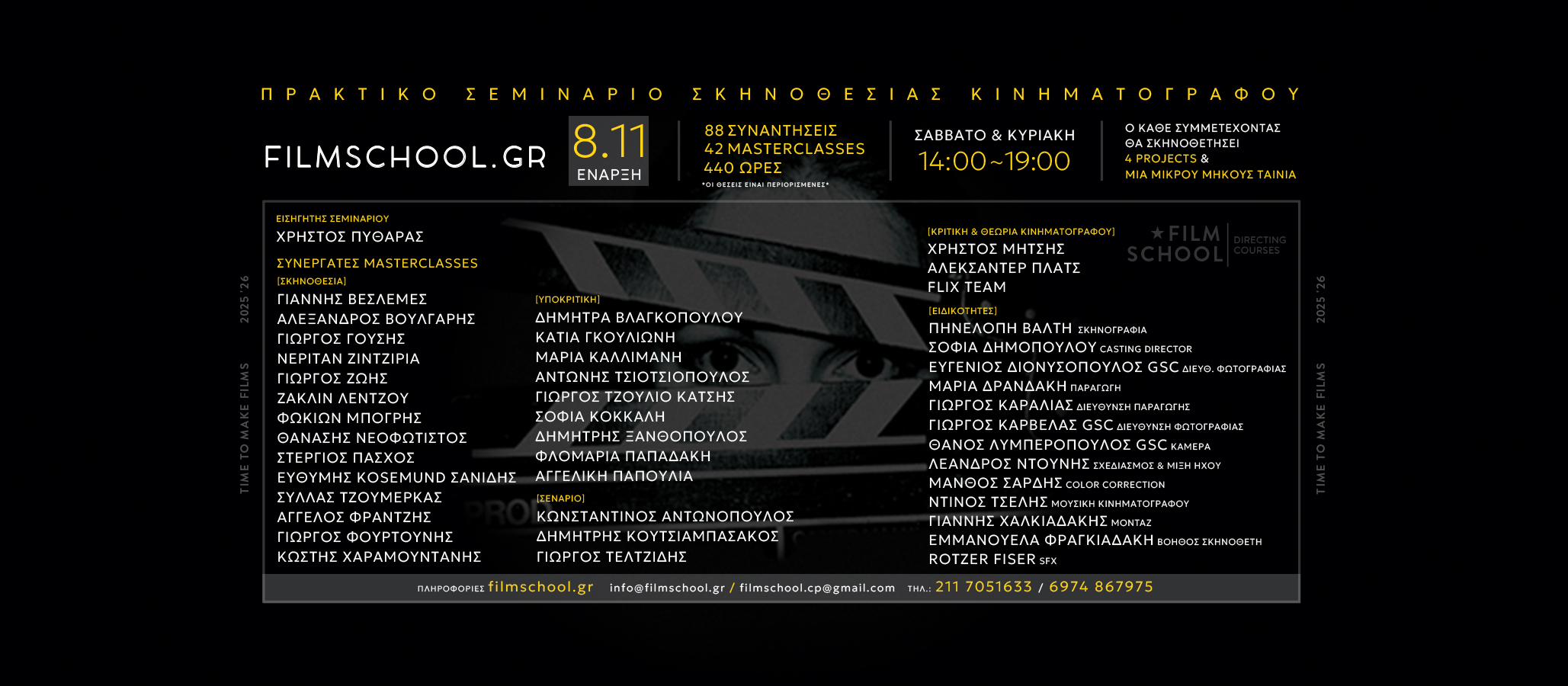 Για περισσότερες πληροφορίες του σεμιναρίου στο επίσημο site filmschool.gr.
