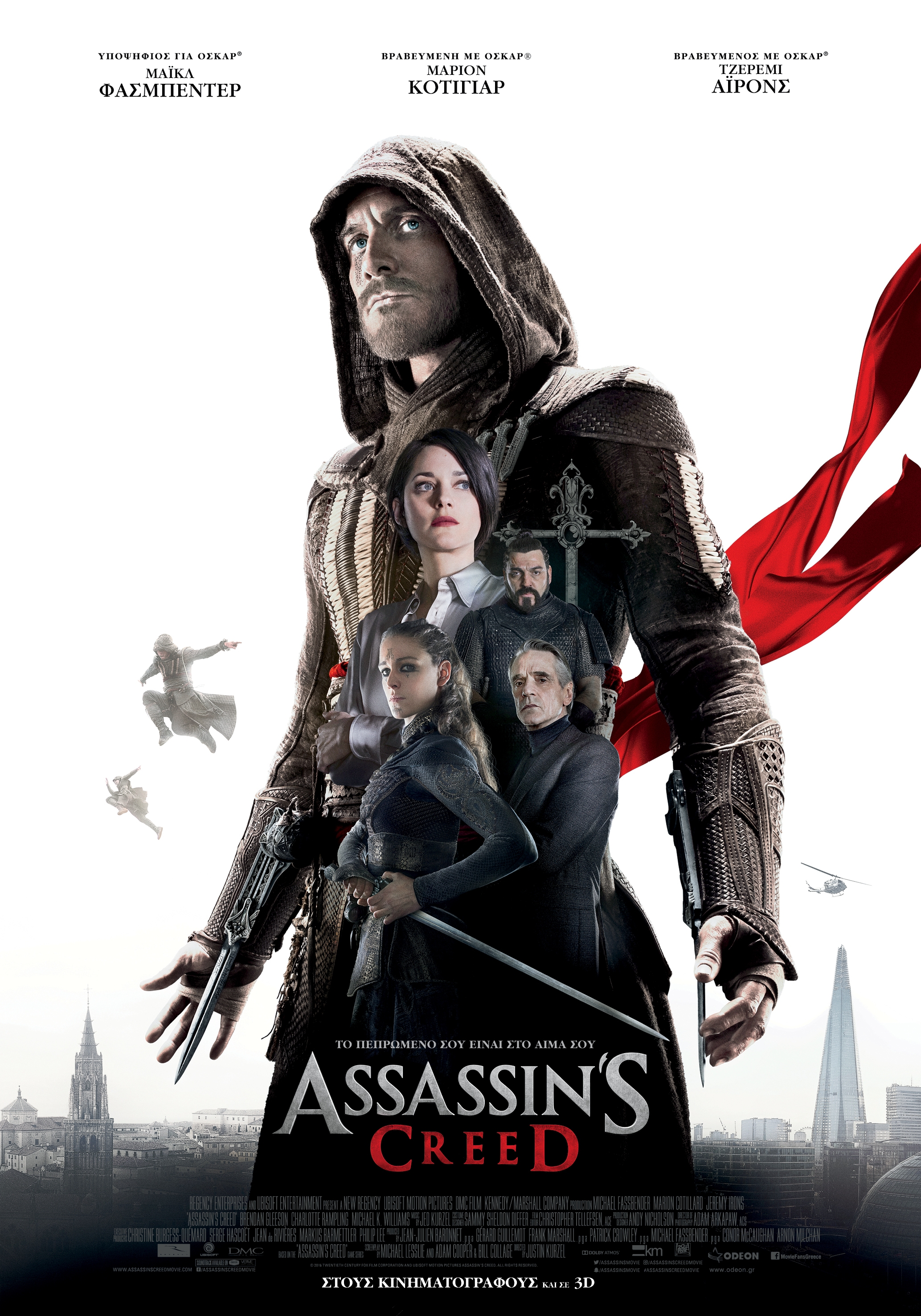 Το διάσημο βιντεοπαιχνίδι δράσης, που μετρά μερικές δεκάδες εκατομμύρια πωλήσεις σε ολόκληρο τον κόσμο, μεταφέρεται στη μεγάλη οθόνη με τον υποψήφιο για Όσκαρ, Μάικλ Φασμπέντερ, και τη βραβευμένη με Όσκαρ, Μαριόν Κοτιγιάρ, στους πρωταγωνιστικούς ρόλους.