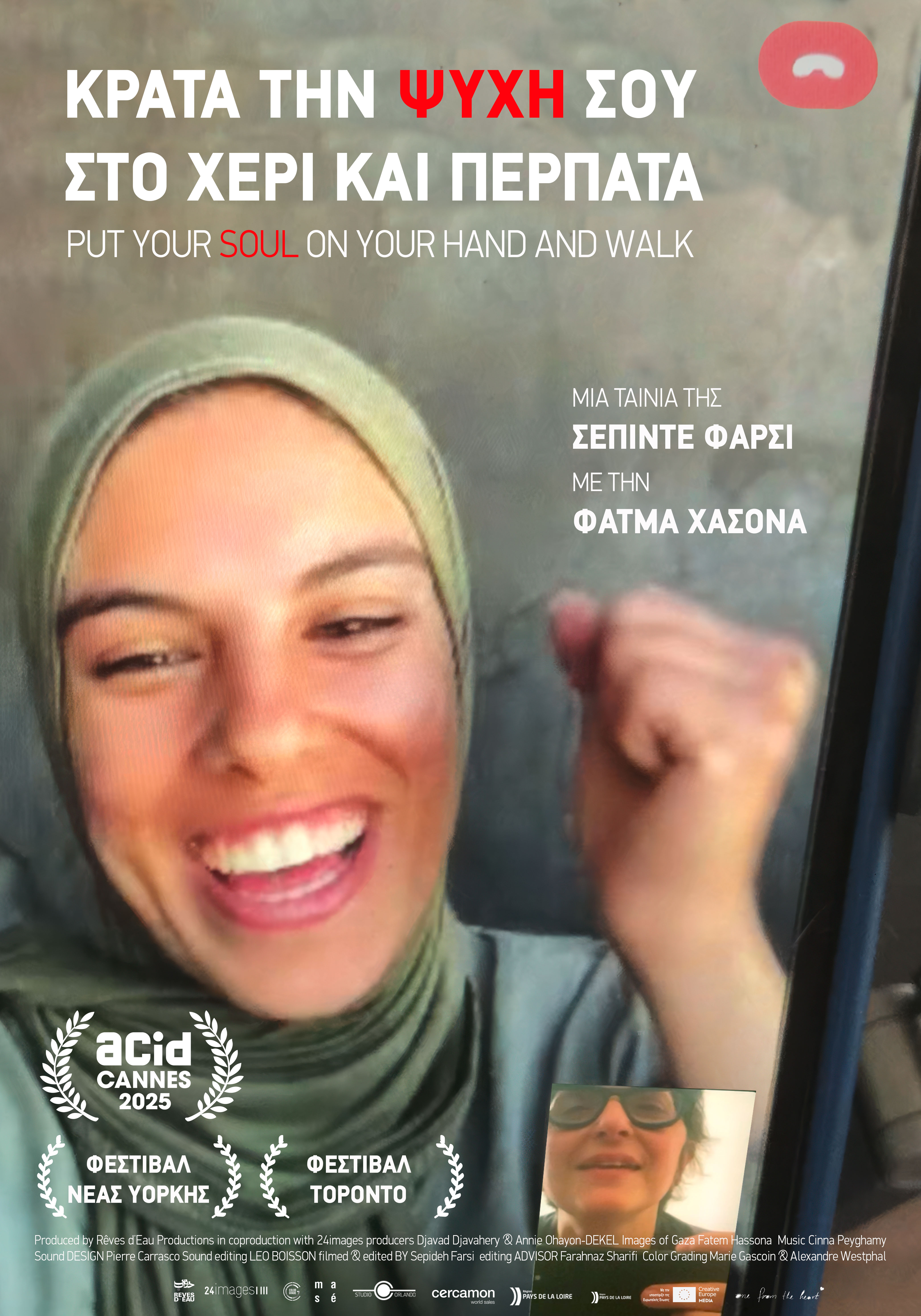 Βραβευμένο πρόσφατα με τη Χρυσή Αθηνά για το καλύτερο ντοκιμαντέρ στο 31ο Διεθνές Φεστιβάλ Κινηματογράφου της Αθήνας Νύχτες Πρεμιέρας, το συνταρακτικό ντοκιμαντέρ της Σεπιντέ Φαρσί, επιστρέφει στις αίθουσες προσφέροντας την πλέον αυθεντική καταγραφή μιας καθημερινότητας που υπομένει και αντιστέκεται στην γενοκτονία του λαού της Παλαιστίνης, όπως συμπυκνώνεται στο ακατέργαστο έργο, το πρόσωπο και το χαμόγελο της αδικοχαμένης 24χρονης φωτορεπόρτερ, Φάτμα Χασόνα.