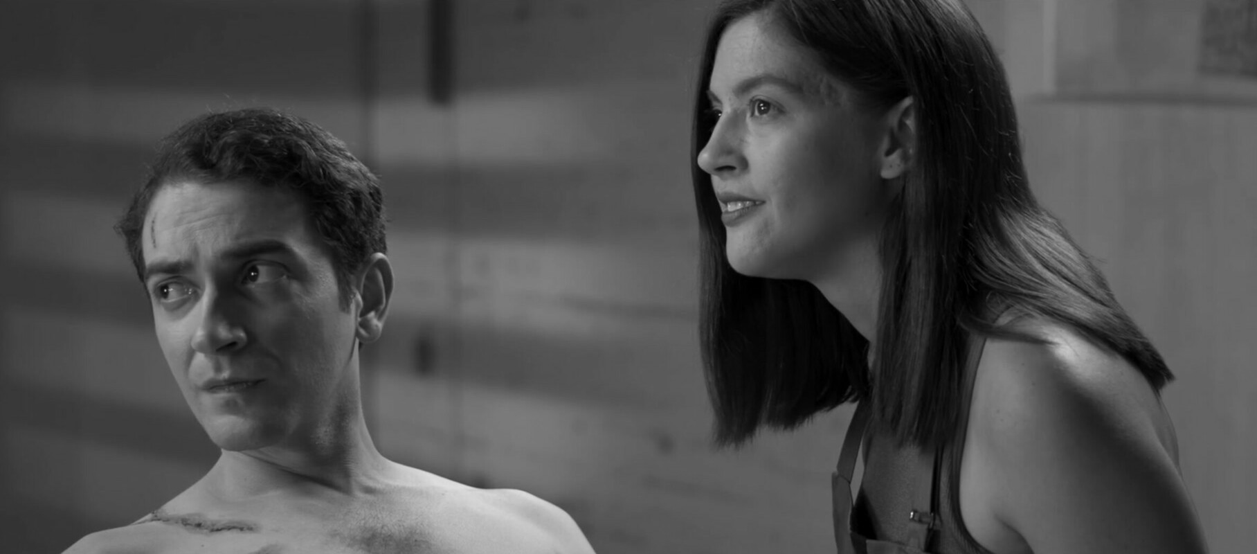Διότι στοργικά στεκόμενος παρά τω δημιουργώ, εκκινώ από αφετηρία γεμάτη ελπίδα ριζωμένη στην καθαυτή όψη του πράγματος, που στο κάτω-κάτω αποτελεί κι ένα νευραλγικό, και σωσίβιο, ποσοστό της ταινίας. Και από την όψη ήμουν εξ αρχής σε ένα ευτυχές, όλο συναρπασμό «κάτι υπάρχει εδώ». Που σε κάθε απογοήτευση το ανακαλούσα μήπως και εξομαλύνω την εντύπωση που ολοένα γινόταν και πιο αλγεινή. Από τι; Από μια σεναριακή προσέγγιση που (ίσως σκόπιμα αντιαφηγηματικά) δεν μοιάζει να σέβεται την απορία που γεννά και απαγγέλλει παρά οικοδομεί χαρακτήρα, κατάσταση, ένταση, ζητούμενο, θέμα. Από ένα σενάριο που διαλογικά σα να αντλεί από κάποιο αμερικάνικο λογοτεχνικό νουάρ και στήνει ρητορικούς διαλόγους-μονολόγους, που βρίθουν «ξενικών» αποκλήσεων μεταξύ των χαρακτήρων (τρελή, βλάκα, γλυκιά μου, τέρας, καθίκι, σκύλα, ηλίθια/-ε και πάει λέγοντας), οι οποίες αρθρώνονται παρατακτικά και αδιάφορα για το τι συνεπάγονται δραματουργικά και τονικά, ενόσω άλλες φράσεις διατείνονται, συχνά ιλαρά (στα αυτιά μου) και άνευ αντιληπτού -από εμένα- νοήματος («σταμάτα να πηγαίνεις τόσο συχνά για βάρδια στην απόσταξη», «17 μιλιγκράμ, βλάκα»). Η αίσθηση επιτείνεται από κάποιες ερμηνείες που κινούνται μεταξύ θεατρικότητας, «σχολής» και γενικής οδηγίας νατουραλισμού που κοντράρει ατυχώς (αλλά και πάλι ίσως μπρεχτικά σκόπιμα) το επιτυχές αλλόκοσμο σκηνικό και την δεδομένη sci-fi αίσθηση. Όπως και πάλι στο ελληνικό φανερό «σχολειό» του μουσικού εντέχνου, όταν η ερμηνεία τσιτώνεται λες και απαγγέλλει Ρίλκε, ενώ η μουσική είναι περιορισμένα ενδιαφέρουσα και ο στίχος τετριμμένα εκκεντρικός. Όσο για την μουσική καθαυτή του Νίκου Κυπουργού θα ήταν αδύνατον να μην έχει «κάτι», είναι όμως, εκτιμώ, κάτι που χωρίς να το έλεγε κανείς ασύνδετο, παραμένει εξυπηρετικό του εαυτού του και δεν συμβάλλει (σε αυτόν τον θεατή) στην αίσθηση, αντίθετα υπενθυμίζει τον παραλληλισμό του εντέχνου. Δεν μπορώ να γνωρίζω αν ευθύνεται ο συνθέτης ή η σκηνοθετική οδηγία.